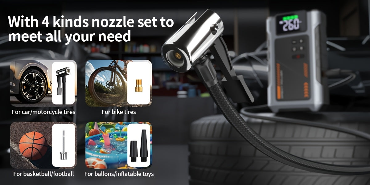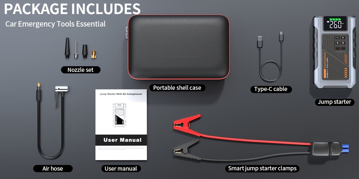 Arrancador de batería portátil inalámbrico de 4000 A con compresor de aire, cargador de batería portátil de 12 V (8,0 L de gas/1,72 galones de diésel), arranque rápido, entrada/salida USB, LED de emergencia, accesorios