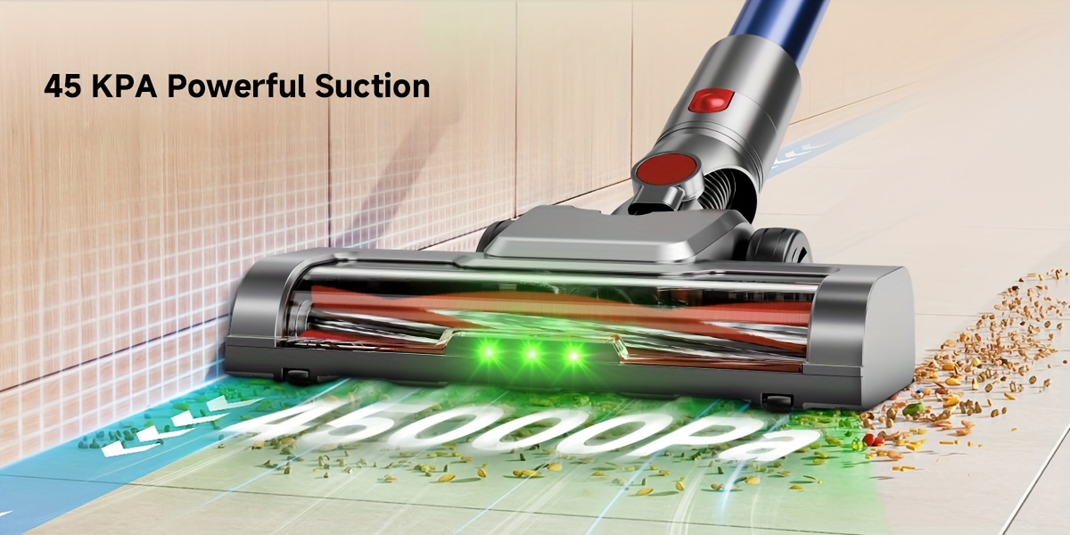Aspiradora ligera de 35-45 kPa con LED verde mejorado, cepillo antienredos, batería extraíble, múltiples niveles de succión, hasta 45 minutos de autonomía, accesorio para coche de mujer, aspiradora para alfombras, pelo d