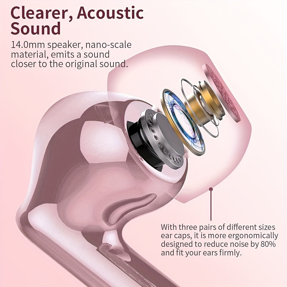 Auriculares inalámbricos 5.3 con sonido estéreo de graves, micrófono con cancelación de ruido y pantalla LED, intraaurales, 40 horas de reproducción, aptos para portátiles, tabletas, teléfonos móviles y para practicar
