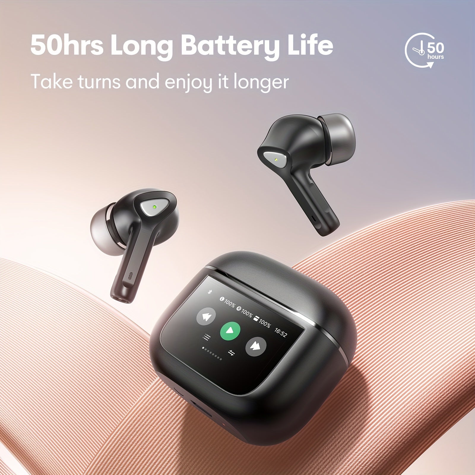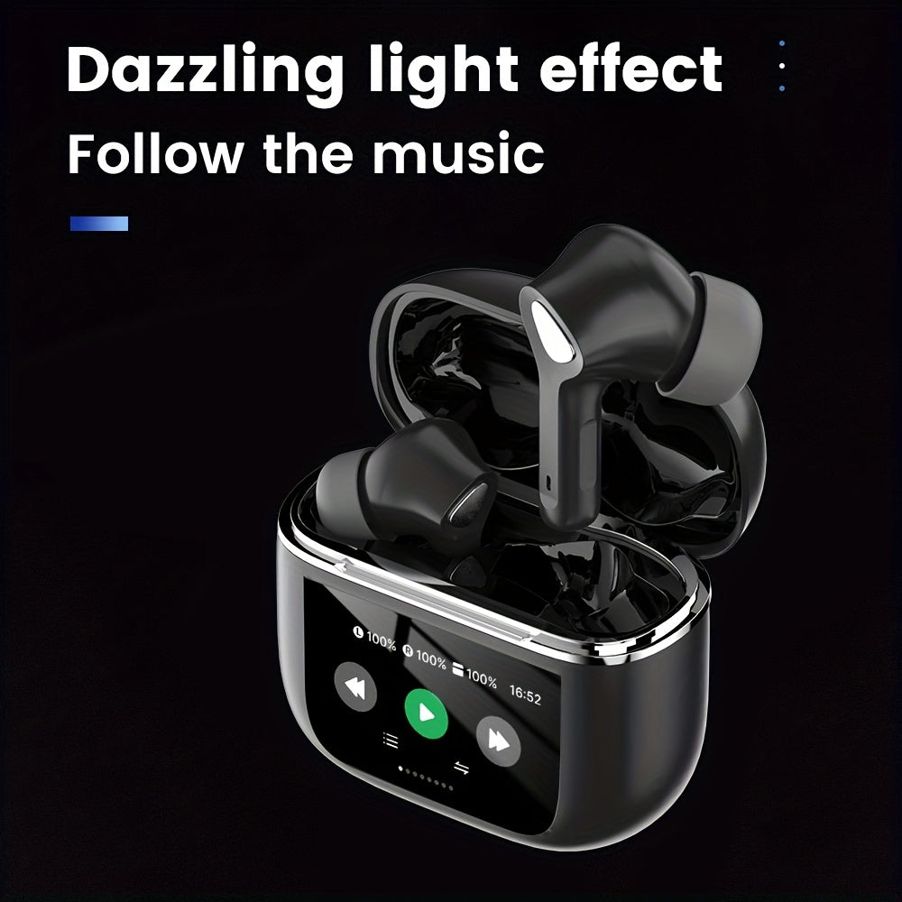 Auriculares inalámbricos con pantalla táctil de 5.3", batería de larga duración de 50 h, graves profundos, micrófono HD, aptos para teléfonos móviles, tabletas y portátiles. Auriculares inalámbricos con carga inalám