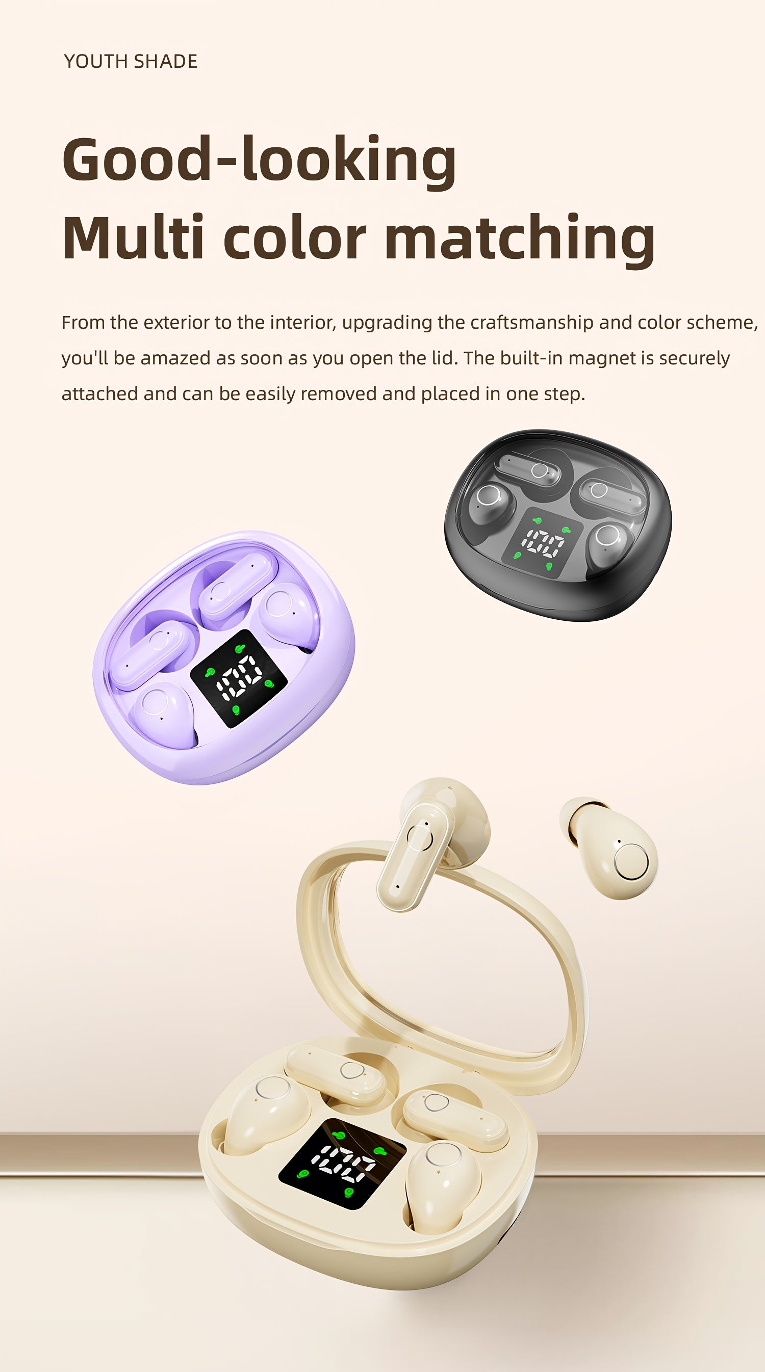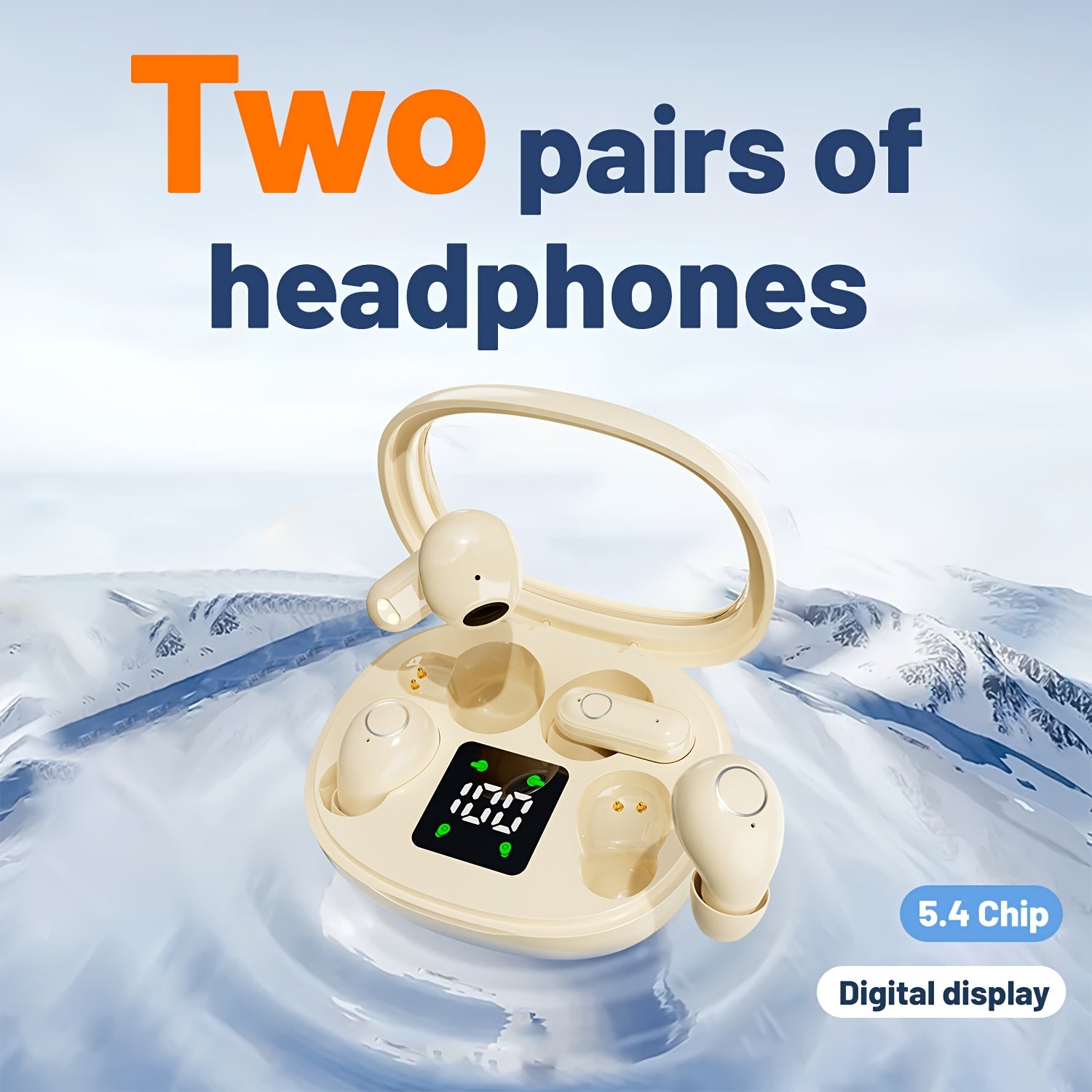 Auriculares inalámbricos deportivos ultracompactos con mango corto, estéreo de graves Hi-Fi, calidad de sonido dual 5.4, reducción de ruido cómoda, pantalla digital de alta definición con micrófono, tiempo de espera ult