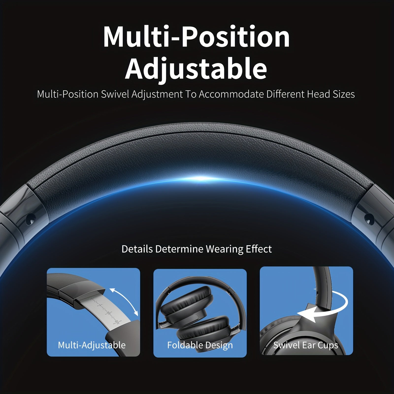 Auriculares supraaurales con micrófono, 65 horas de reproducción, ligeros, plegables y portátiles, con graves estéreo, llamadas manos libres, ideales para juegos, PC y teléfonos móviles, con cancelación de ruido ENC |