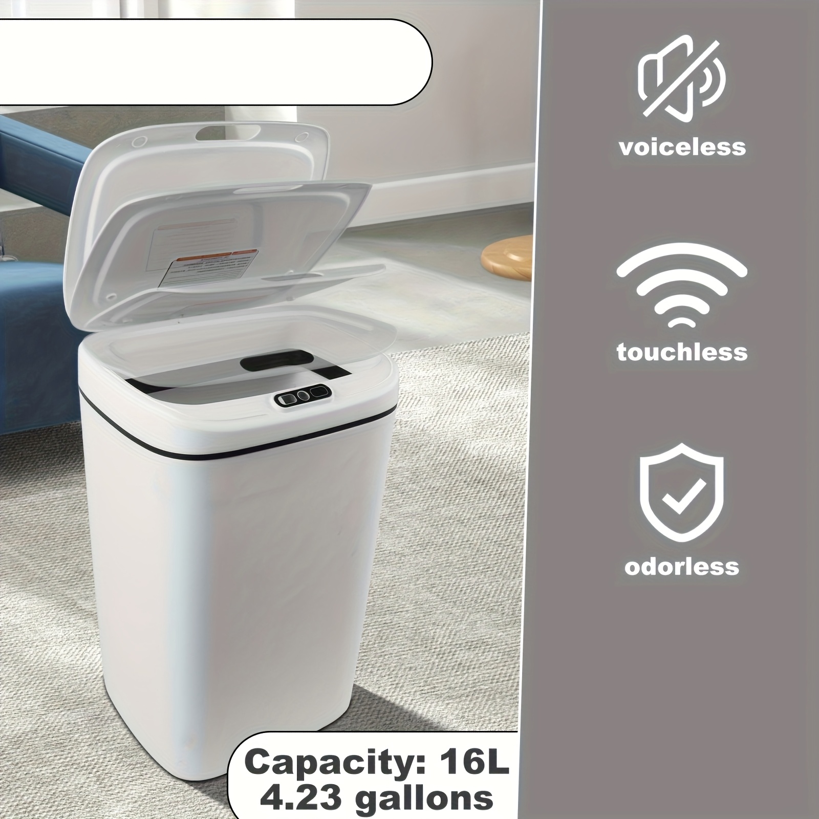 Basureros inteligentes con sensor de movimiento, manos libres, eléctricos para cocinas y baños, ideales para oficinas, hoteles, cocinas, dormitorios, baños, espacios públicos y exteriores.