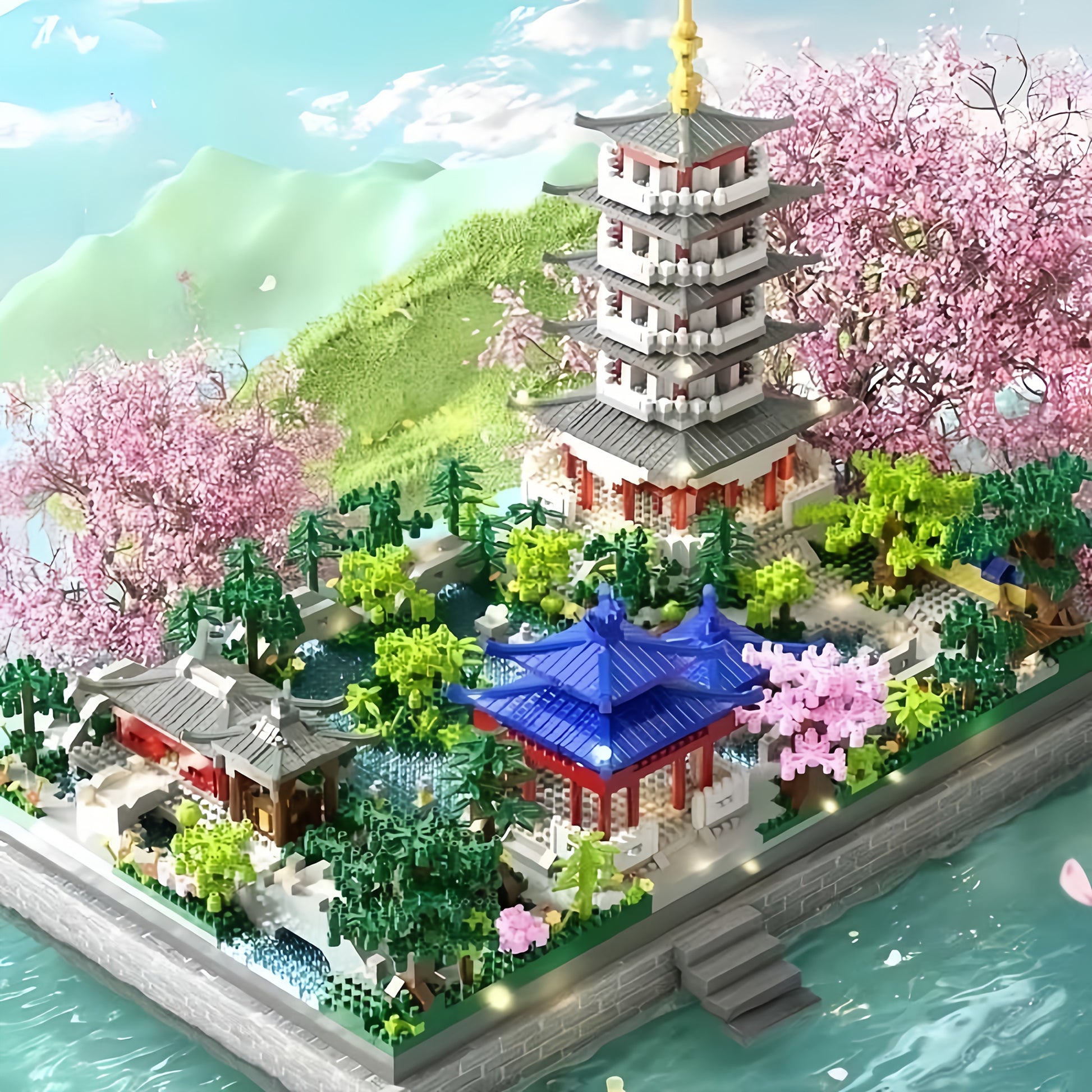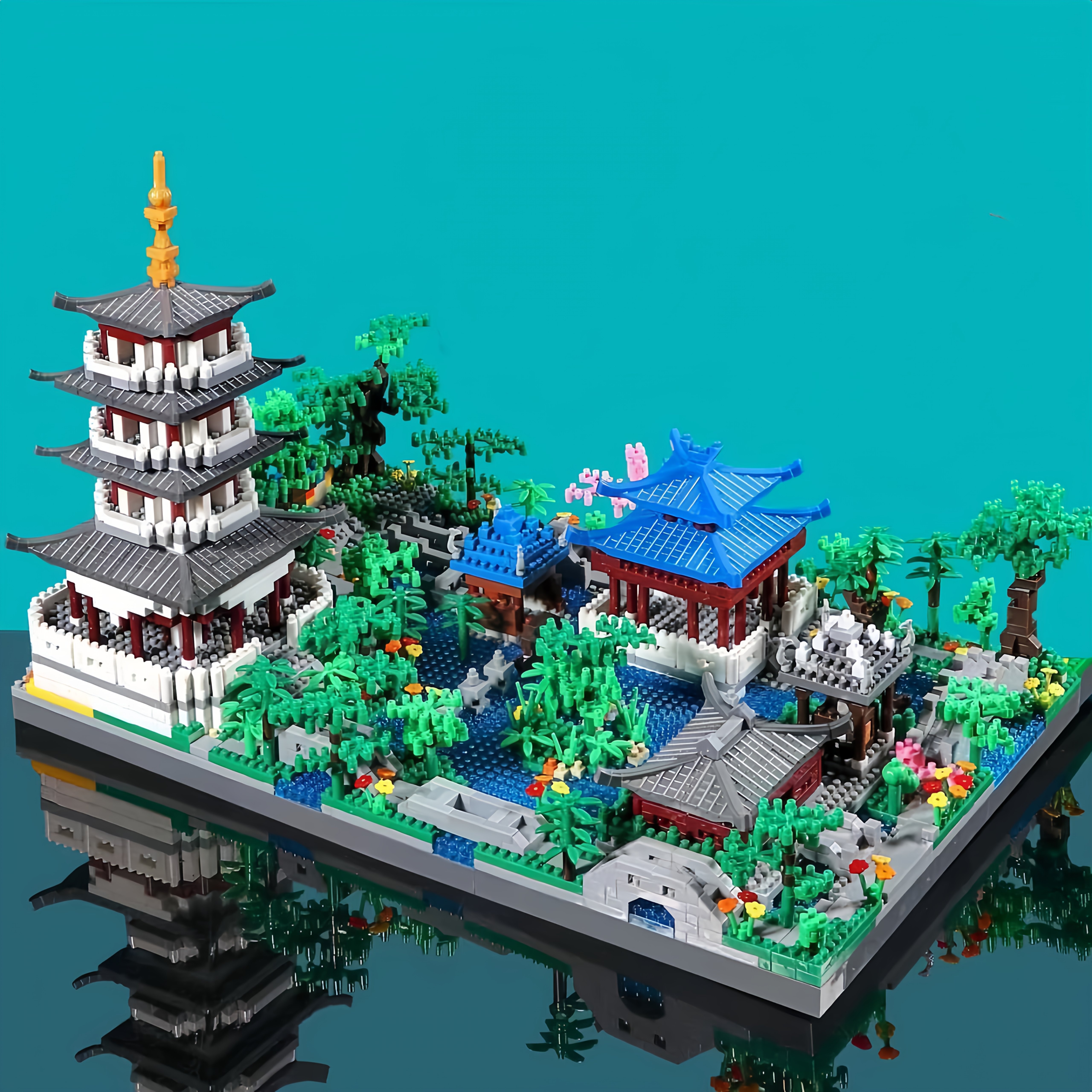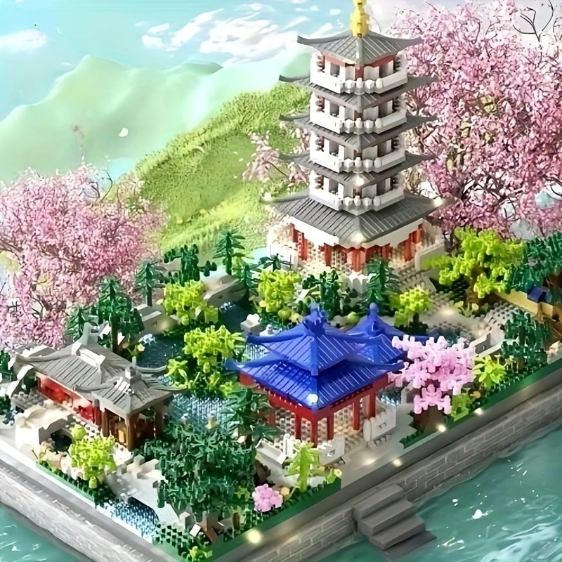 Bloques de construcción de partículas del lago Oeste de Hangzhou, 3800 piezas, edificios famosos de alta dificultad, modelos de ensamblaje gigantes a gran escala para hombres y mujeres, regalo de cumpleaños y Navidad.