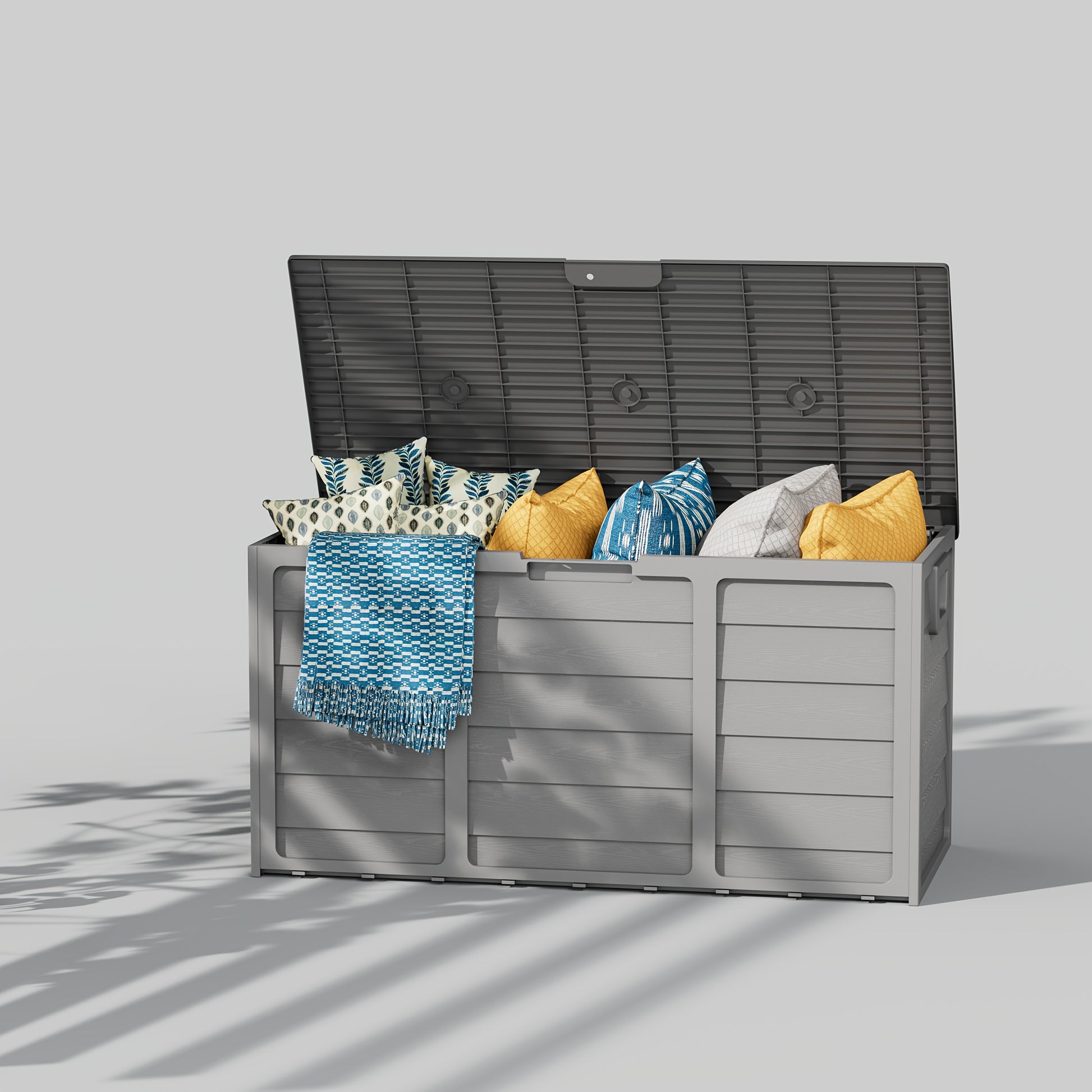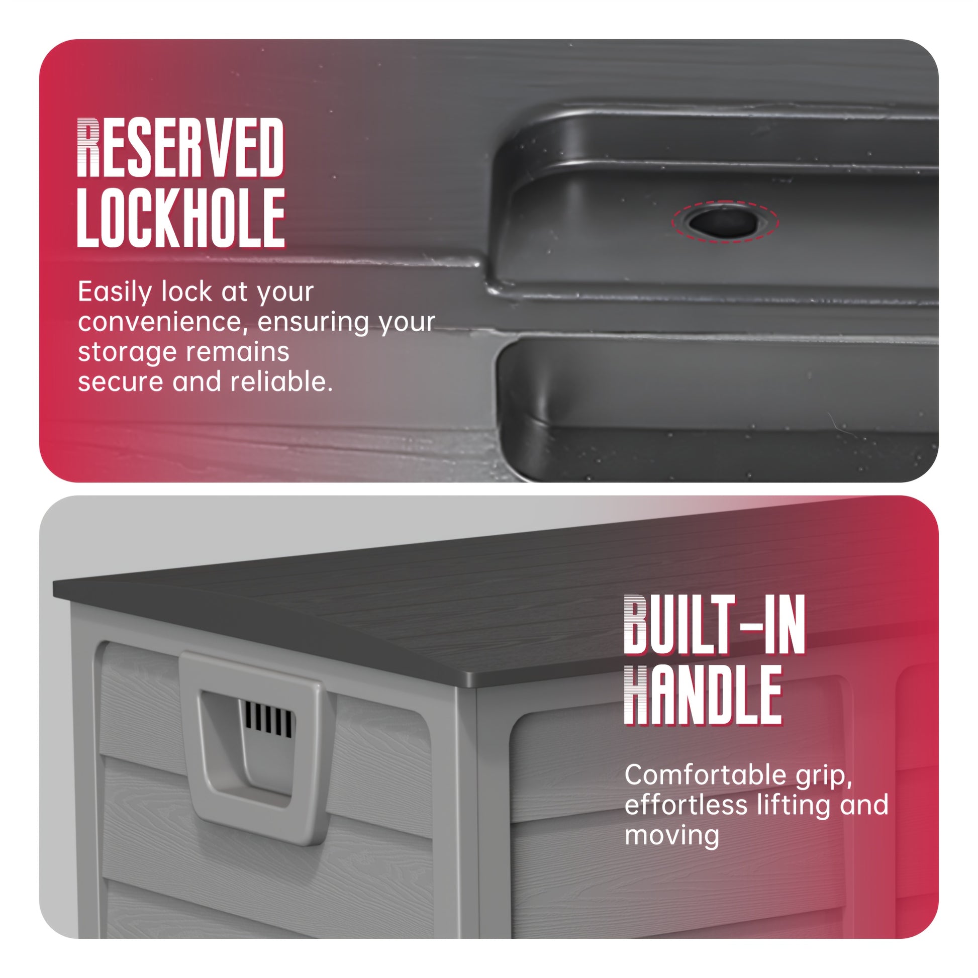Caja de almacenamiento exterior de resina de 75 galones con asas. Ideal para accesorios de piscina, herramientas de jardín, equipo de camping, regalo navideño. Fácil de montar. Ideal como caja, armario o estante para almac