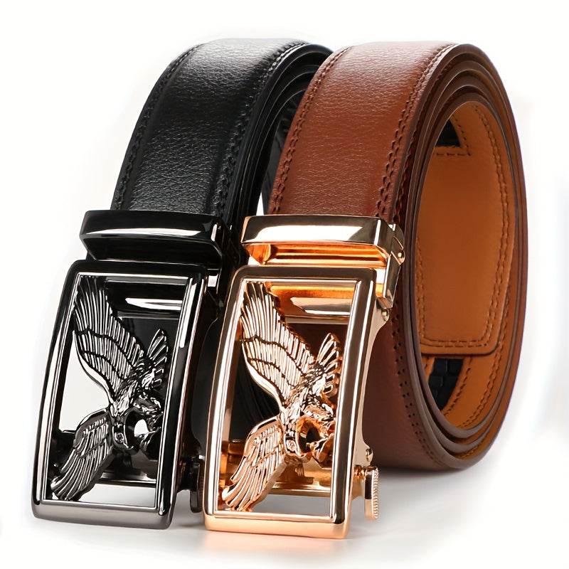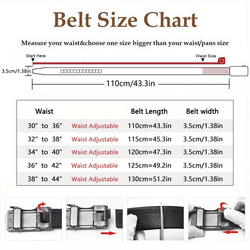 [Cinturones de trinquete de cuero genuino] 2 cinturones de trinquete de cuero genuino para hombre | Hebilla automática ajustable, aleación duradera, estilo informal y profesional, alta calidad, fácil de usar en cualquier o