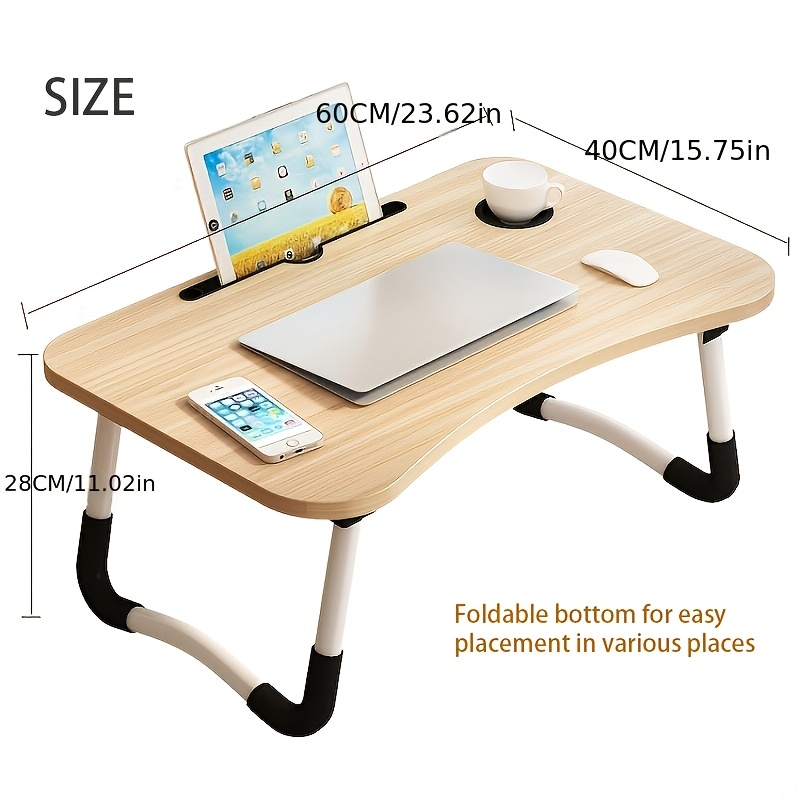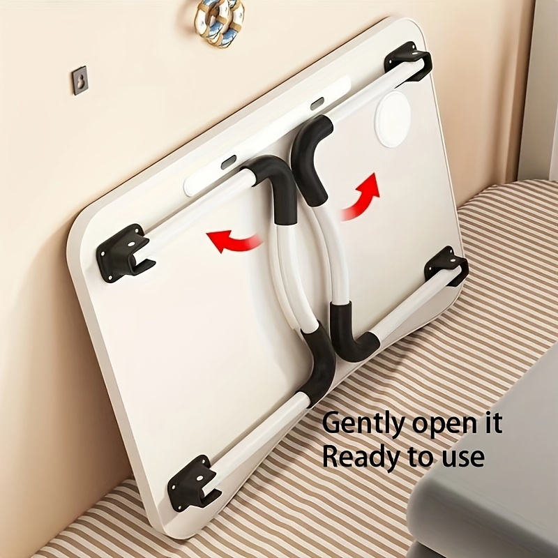 Mesa de cama plegable compacta de madera maciza con patas y brazos blancos, ligera y portátil para dormitorio, ventanal o balcón.