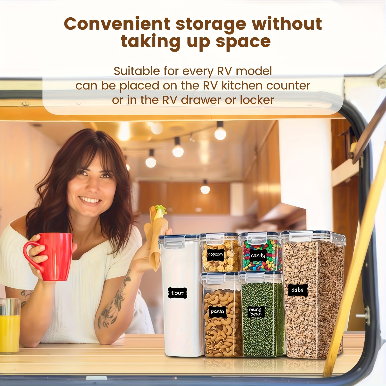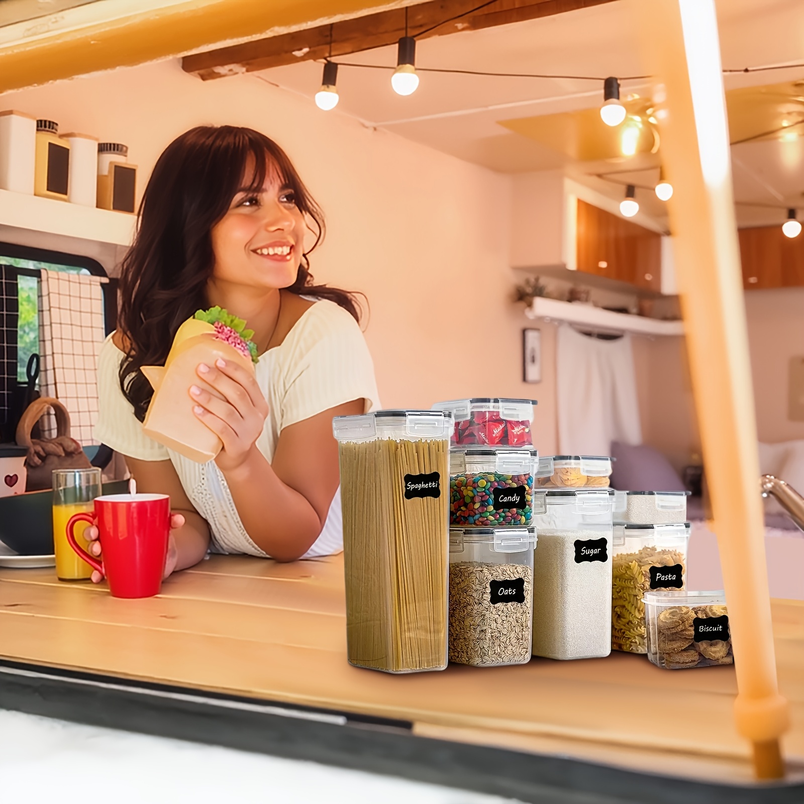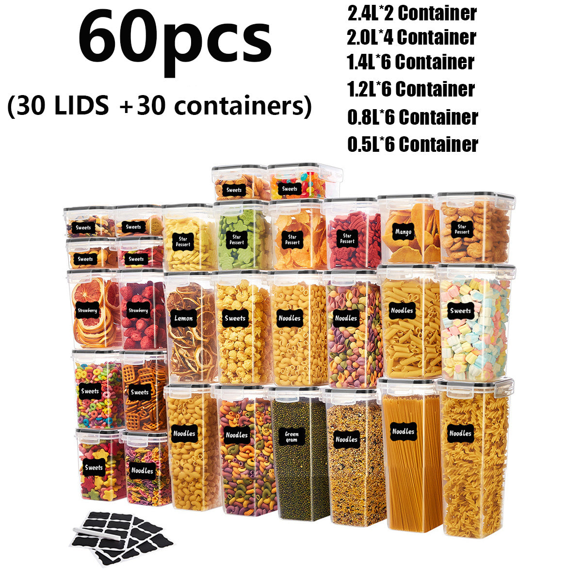 Set de organizador para alimentos. Plástico sin BPA para cereales, pastas y harina.