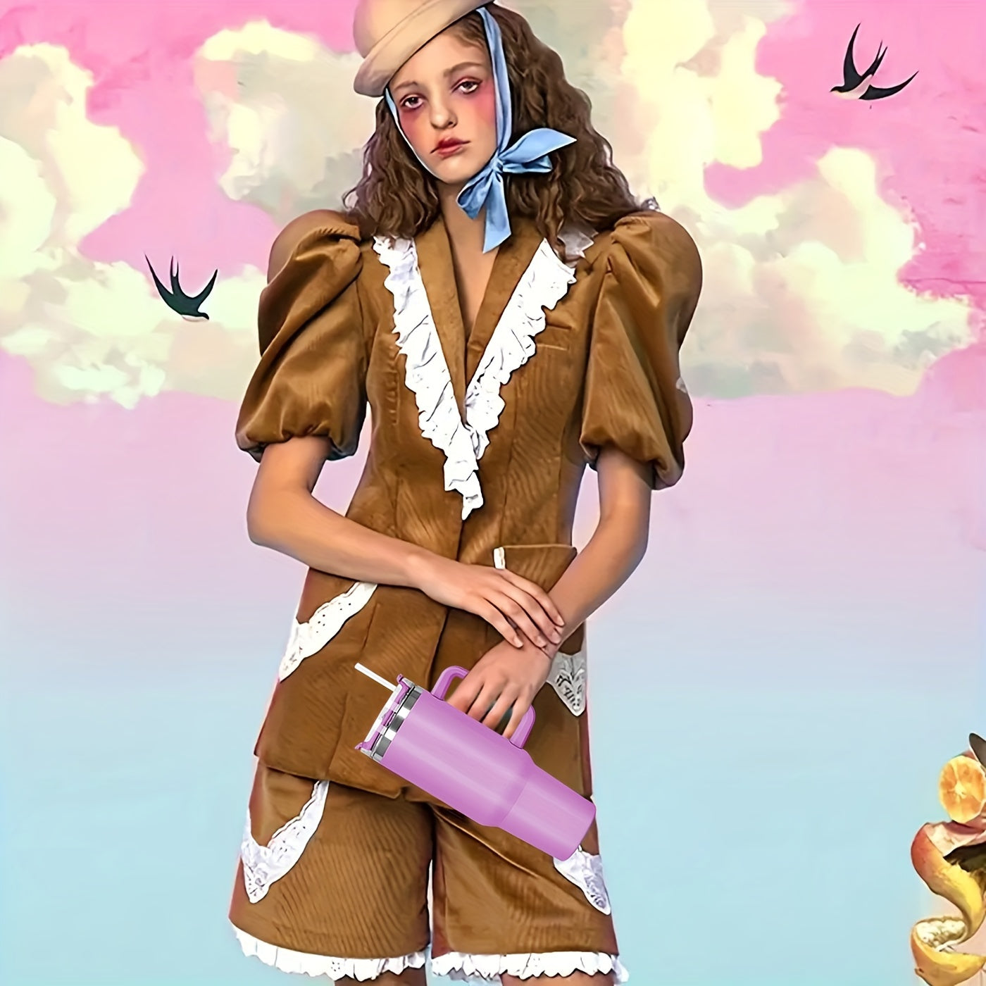 Vaso de acero inoxidable de 1,2 litros con asa y tapa con pajita, taza térmica de viaje para deportes, fitness y actividades al aire libre, reutilizable para coche, botella de agua de gran capacidad (1,2 litros), varios colo