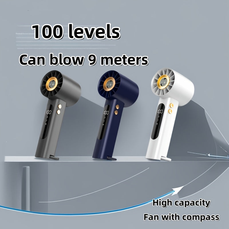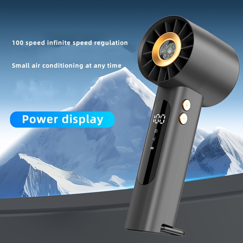 Ventilador turbo de mano recargable por USB - Ventilador portátil de escritorio con configuraciones de velocidad de 1 a 100 y modo turbo, batería de larga duración - Para acampar, viajar, oficina y uso al aire libre - Vent